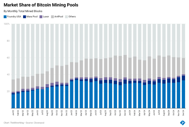 De acuerdo con un análisis publicado a principios de enero de 2025 por The Miner Mag, Foundry US, MARA Pool y Luxor suman cerca del 40% del hashrate total de Bitcoin gestionado a través de pools. Este ascenso se hizo más evidente tras las prohibiciones establecidas en China contra la minería de Bitcoin, que reconfiguraron el mapa mundial y abrieron mayor espacio para actores estadounidenses.