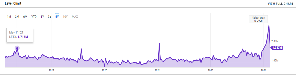 El pico de transacciones diarias alcanzó los 2,89 millones el pasado 7 de febrero.
