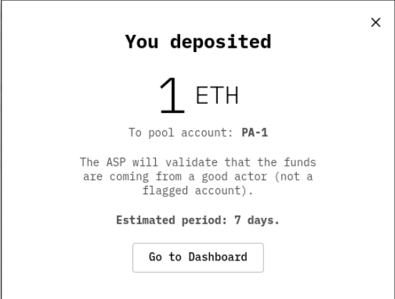 A diferencia de otras dApps como Tornado Cash, que enfrentó sanciones por su incapacidad para filtrar fondos sospechosos, si los fondos analizados por los ASP no están vinculados a actividades ilícitas, se integran al conjunto de anonimato del contrato inteligente. Este proceso puede ser tedioso, ya que, esa evaluación puede demorar hasta siete días.