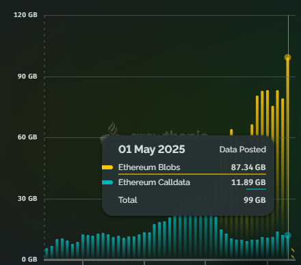 Este aumento refleja un uso intensivo de los blobs y calldata, mediciones importantes ya que indican la capacidad de Ethereum para gestionar un ecosistema en expansión donde las L2 manejan aplicaciones descentralizadas con alta demanda de datos, desde finanzas hasta juegos on-chain.