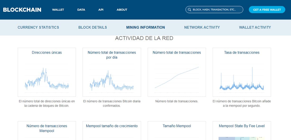 Los usuarios de Blockchain.info tambiรฉn tienen acceso a datos detallados de cada una de las transacciones realizadas desde una determinada billetera. Ademรกs, el sitio cuenta con un visualizador de la cadena, que te permite ver la altura del bloque en el que estรก la transacciรณn rastreada e informaciรณn sobre la dificultad del algoritmo de minerรญa, asรญ como un contador de transacciones por dรญa.