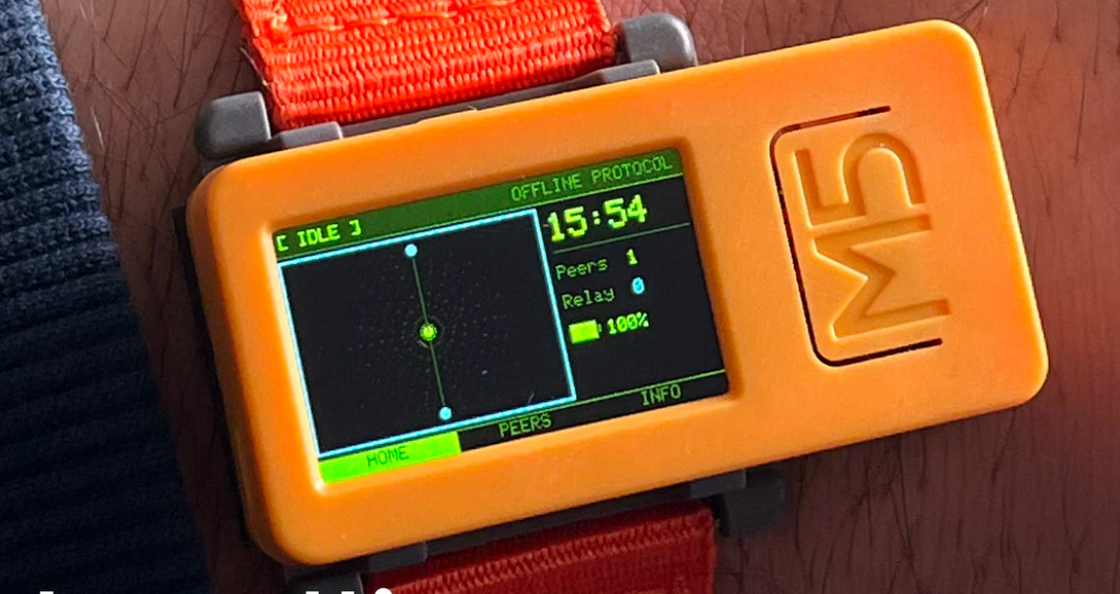 El dispositivo pesa 15 gramos y retransmite tráfico cifrado de dos redes mesh simultáneamente.