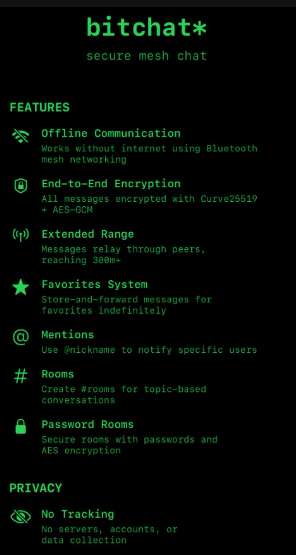 Para la seguridad, Bitchat emplea modelos de cifrado de mensajes como X25519 y AES-256-GCM, que apuntan a que solo los interlocutores accedan al contenido.