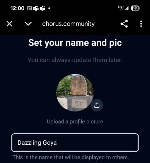 Chorus ya está disponible para su uso y el proceso de crear la wallet se caracteriza por su rapidez. Consiste en cargar una foto de perfil en chorus.community, registrar un nombre cualquiera y listo.