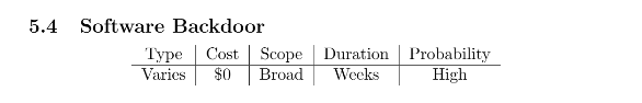 Este ataque podría ser ejecutado tanto por un miembro interno de Ripple Labs como por un externo que comprometiera el código fuente o binario alojado en plataformas como GitHub. Según Todd, el costo económico de este ataque era nulo y su alcance era amplio, con una duración potencial de semanas y una probabilidad alta de éxito.