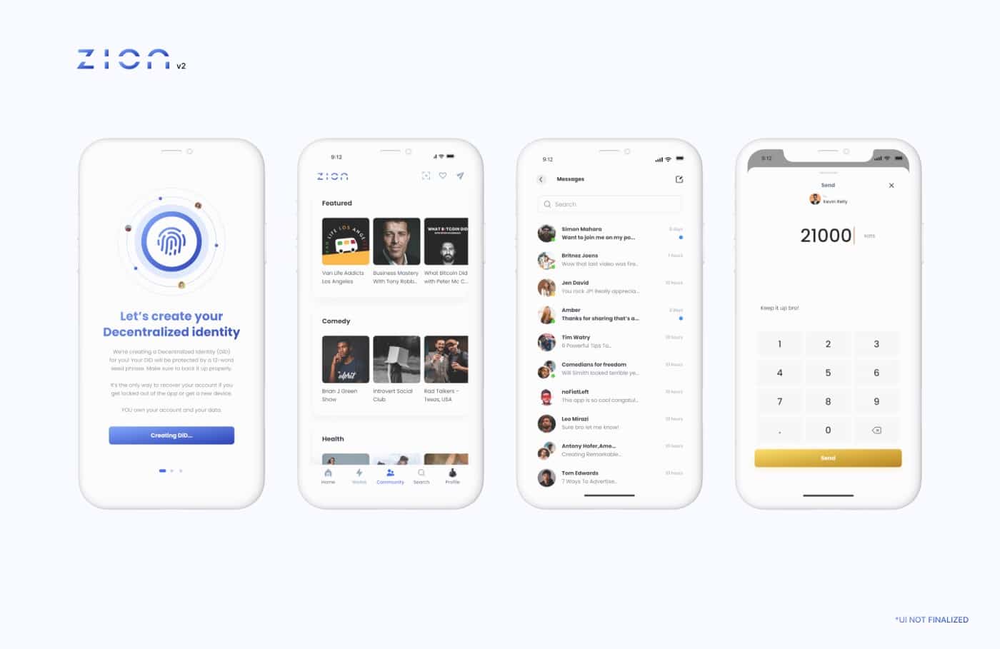 Al ingresar a Zion, cada individuo tendrá un DID (identificador descentralizado) y un nombre de usuario. El DID estará asegurado por una frase semilla de 12 palabras, como las de las wallets de Bitcoin, a las que Zion no tiene acceso, y permitirá tener «una identidad digital verificable y descentralizada».