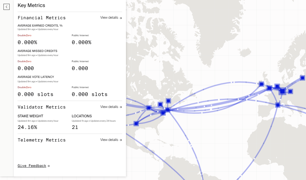 «En DoubleZero, la lógica de enrutamiento del movimiento global de datos está optimizada para la velocidad, a diferencia de la internet pública. Por lo tanto, los validadores se benefician de una menor fluctuación (jitter), que se define como la cantidad de variación en la latencia entre dos puntos finales del cable de datos», explica la documentación.