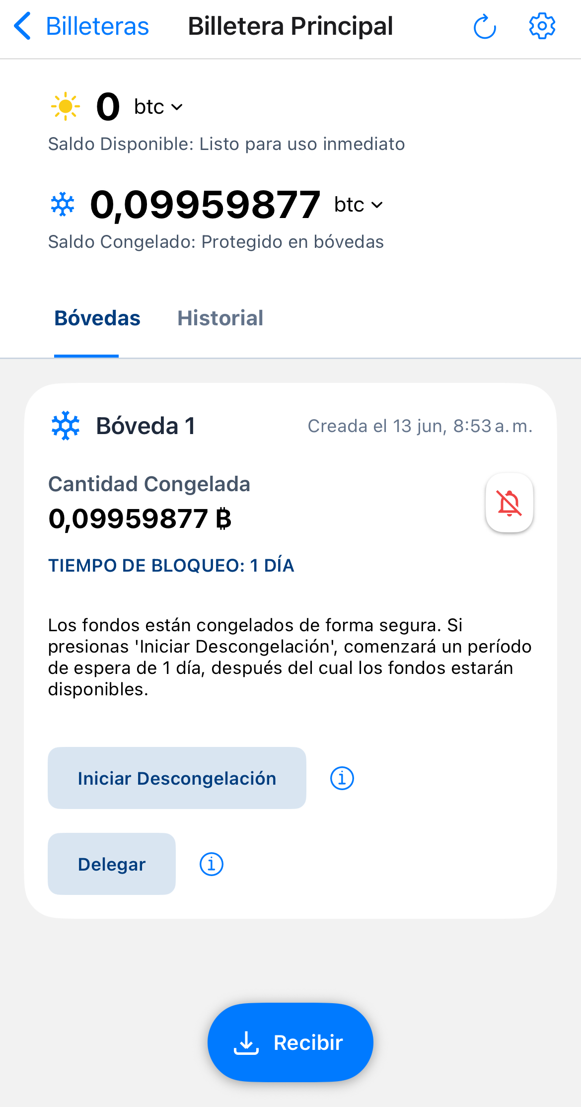 Cuando un usuario necesita usar los bitcoins almacenados en una bóveda debe desbloquear esos fondos. Ese proceso inicia con un período de espera de por ejemplo 24 horas, durante el cual el usuario o un delegado puede cancelar la operación si detecta un acceso no autorizado, como un hackeo o una coerción externa.