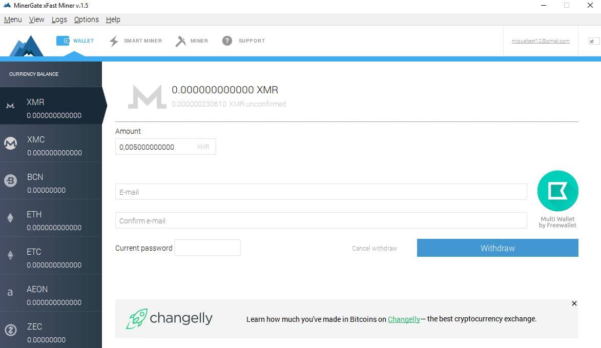 Ahora solo queda presionar sobre Withdraw para comenzar el proceso y listo. El tiempo de espera es considerablemente rápido, aunque MinerGate no especifica exactamente cuánto tiempo tarda.