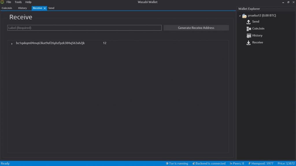 Recibir bitcoins en Wasabi